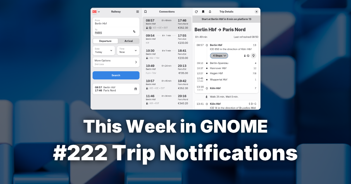 arrow-up13arrow-down1external-linkThis Week in Gnome - #222 Trip Notificationsplus-squarethisweek.gnome.orgLeo@lemmy.linuxuserspace.showMEnglish · 9 days agomessage-square0linkfedilink