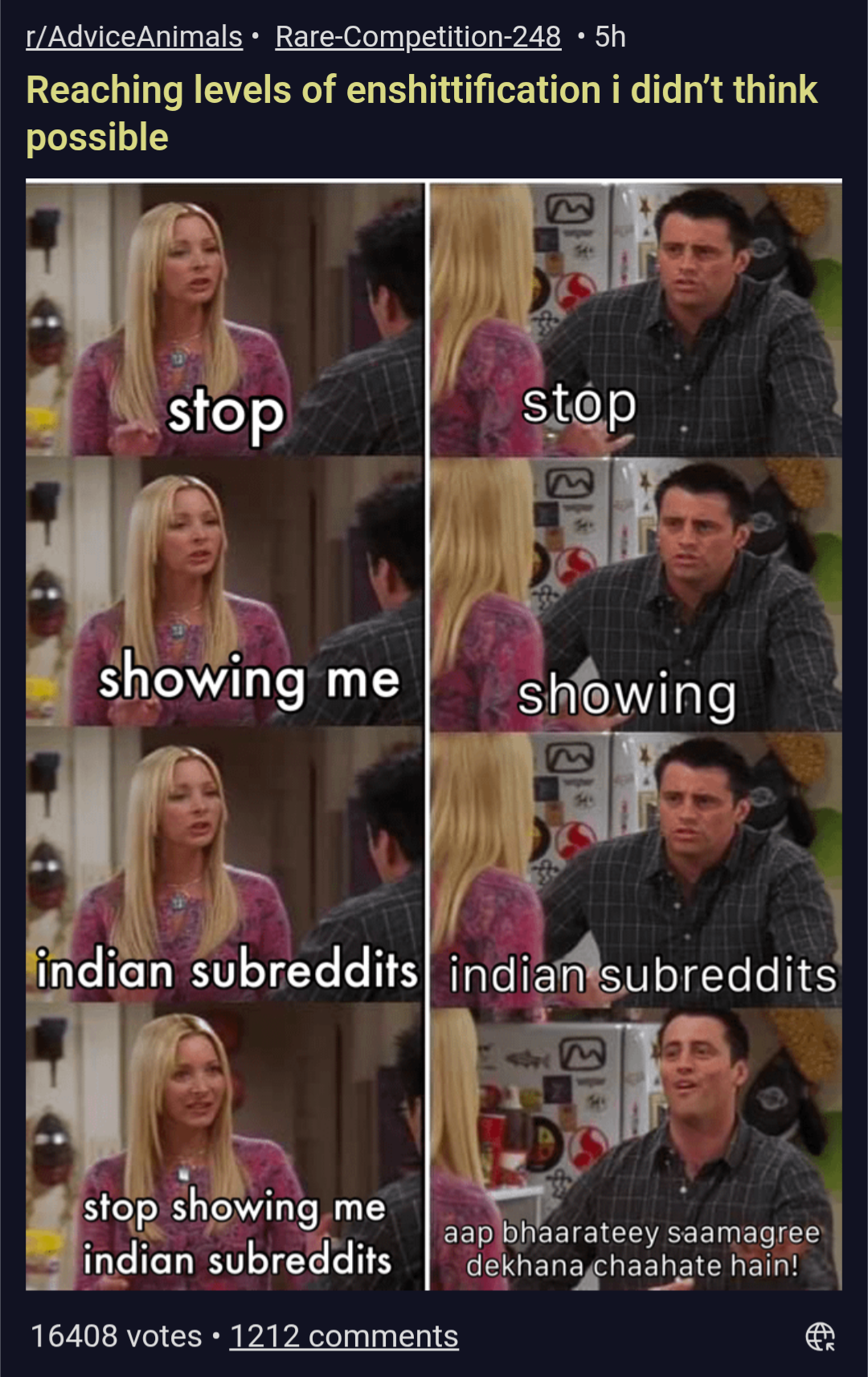 I don’t have a Reddit account but every day, Popular has a bunch of subreddits in a different language, Indian subreddits, or weird smut.