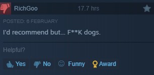 Why not extend this? Like you said, most bots have low play time, valve could exclude (but not delete) reviews with low play time. I agree that doing something like this is a slippery slope towards mobile app store reviews but if it’s done right then it is a net positive.